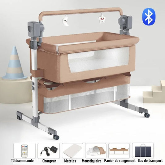 Découvrez notre gamme complète de lits cododo, conçus pour offrir proximité et sécurité aux jeunes parents et leurs bébés. Ces berceaux s'installent contre le lit parental, facilitant l'allaitement et les soins nocturnes. Disponibles en versions électriques avec bercement automatique, bluetooth, musique intégrée et hauteur ajustable, nos modèles s'adaptent à tous les besoins. Une solution idéale pour un sommeil paisible dès la naissance.