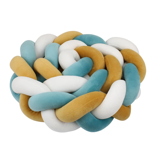 Tresse de lit bébé| Bleu-Blanc-Moutarde